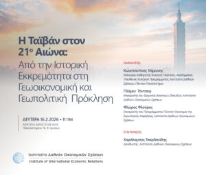 Το Ινστιτούτο Διεθνών Οικονομικών Σχέσεων (ΙΔΟΣ) διοργάνωσε στις 16 Φεβρουαρίου 2026 ημερίδα με θέμα “Η Ταϊβάν στον 21ο αιώνα: Από την ιστορική εκκρεμότητα στην γεωοικονομική και γεωπολιτική πρόκληση”.